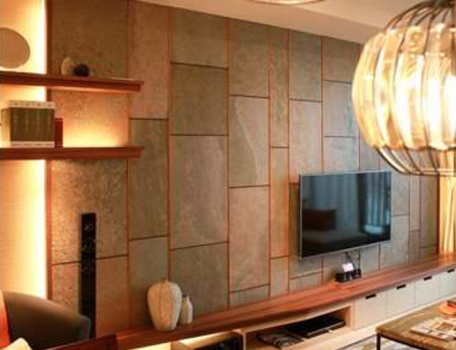 DecorSlate is a paper-thin real stone veneer. The 100% natural stone surface is enforced from the back with fiberglass for better stability and easy processing.