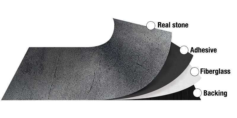 DecorSlate is a paper-thin real stone veneer. The 100% natural stone surface is enforced from the back with fiberglass for better stability and easy processing.